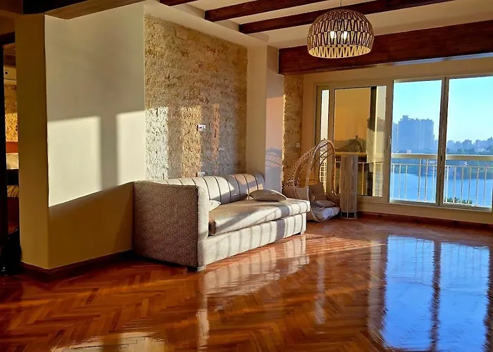 El Apartamento The Nile Dorra El El Cairo tiene terraza y está situado a 25 minutos a pie de la Mezquita de Amr. Los huéspedes pueden disfrutar del Wi-Fi.